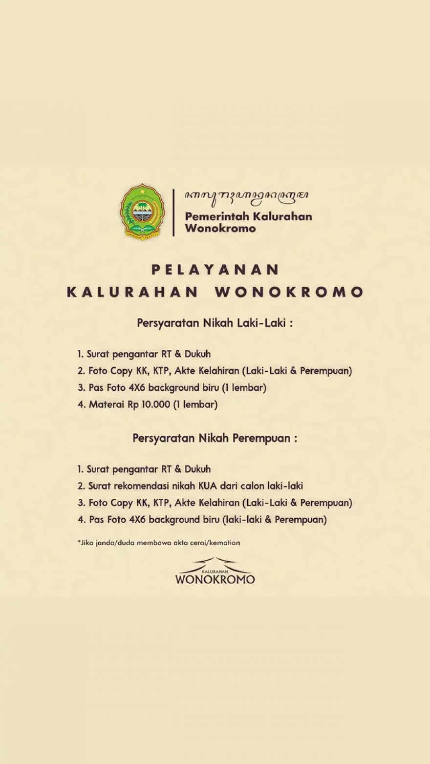 SYARAT–SYARAT PELAYANAN KALURAHAN WONOKROMO