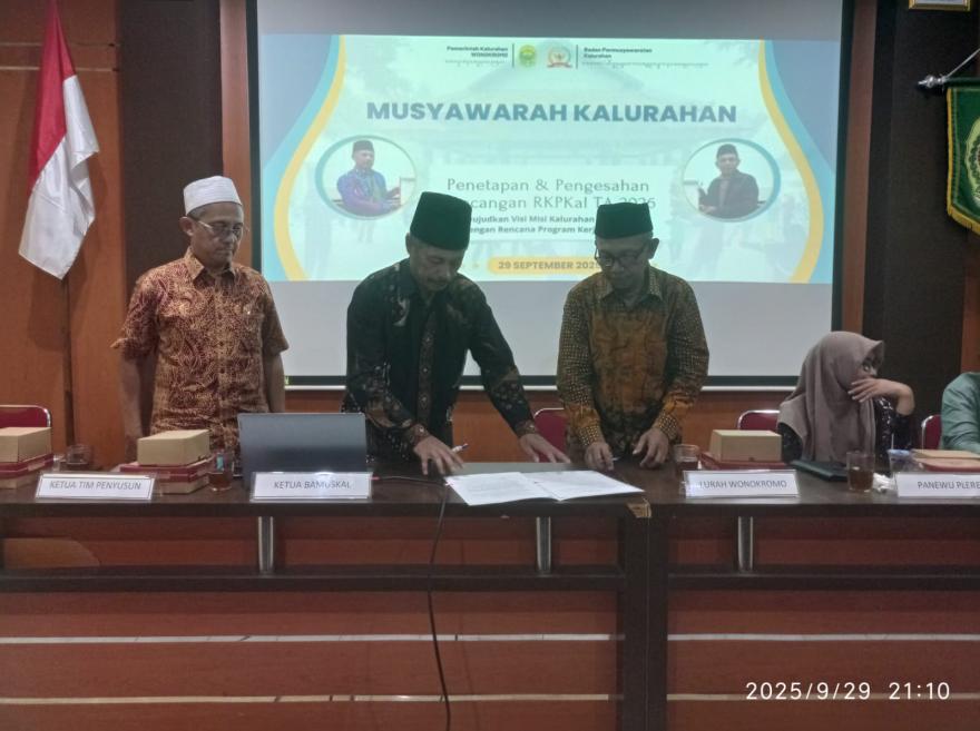 Pada hari Senin, tanggal 29 September 2025, bertempat di Balai Kalurahan Wonokromo, telah dilaksanakan Musyawarah Kalurahan (Muskal) dalam rangka Penetapan dan Pengesahan Rancangan Rencana Kerja Pemerintah Kalurahan (RKPKal) Tahun Anggaran 2026.